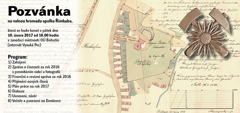 Následovalo představení plánu práce a činností na rok 2017 – úprava expozice v bývalé strojovně, společenské místnosti, do nově získané místnosti po skautkách přestěhovat expozici krojů a v uvolněném prostoru vytvořit expozici řezbářství a truhlářství, „vyčistit-opravit“ kousek struh v blízkosti obecného úřadu v křížení struhové cesty s komunikací na Tisovou a takto zrevitalizovaný ždibínek bývalého vodního hospodářství opatřit informační tabulí o historii struh a báňských rybníků, zvážit odtěžení zásypu komory vodního kola u jámy Štěpánka s provedením průzkumu v navazujících „opuštěných“ důlních dílech převedených do majetku obce Bohutín a mnohé další (údržba areálu Řimbaby a štol včetně zajištění prohlídkové činnosti v podzemí a na povrchu, provoz rozhledny …). Dále organizovat vlastní akce pro veřejnost – velikonoce, čarodějnice, hornické odpoledne o bohutínské pouti, zelňačka, Mikuláš a vánoce. Účastnit se na akcích pořádaných spřátelenými hornickými spolky a zejména setkání hornických měst a obcí v ČR a SR (Chomutov a Nová Baňa).